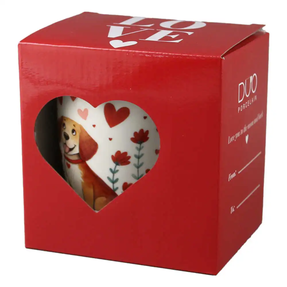 Cana portelan cu infuzor metalic si capac, 360 ml, Catel cu inimioare, cu cutie cadou