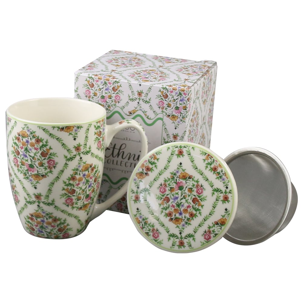 Cana portelan cu infuzor metalic si capac 360 ml, „Fiori classic”, in cutie decorativa