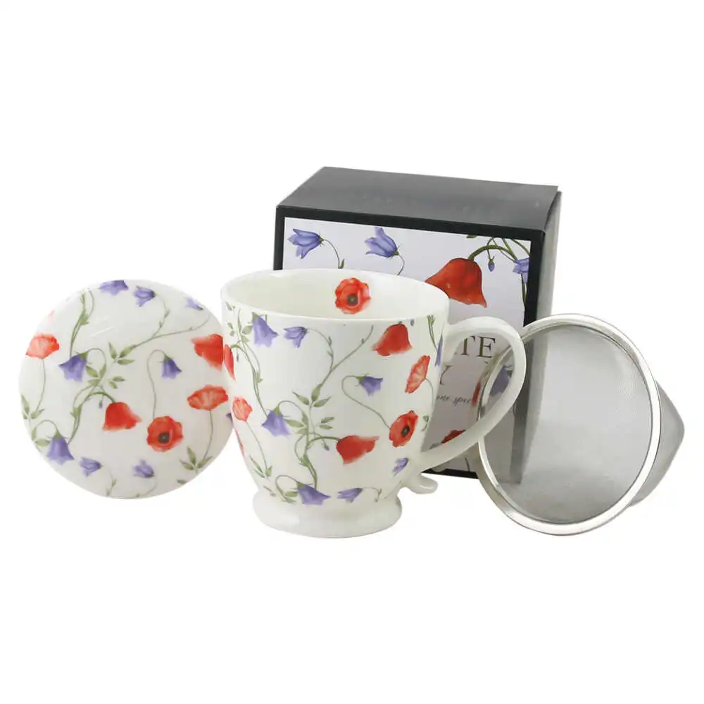 Cana portelan cu infuzor metalic si capac 510 ml, „Angela”, in cutie decorativa