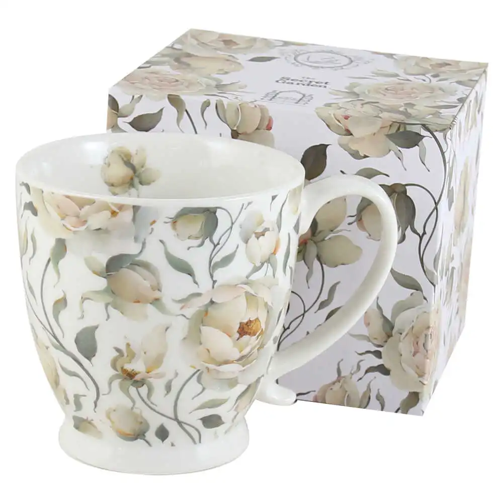 Cana portelan „English Roses White”, 510 ml, in cutie decorativa