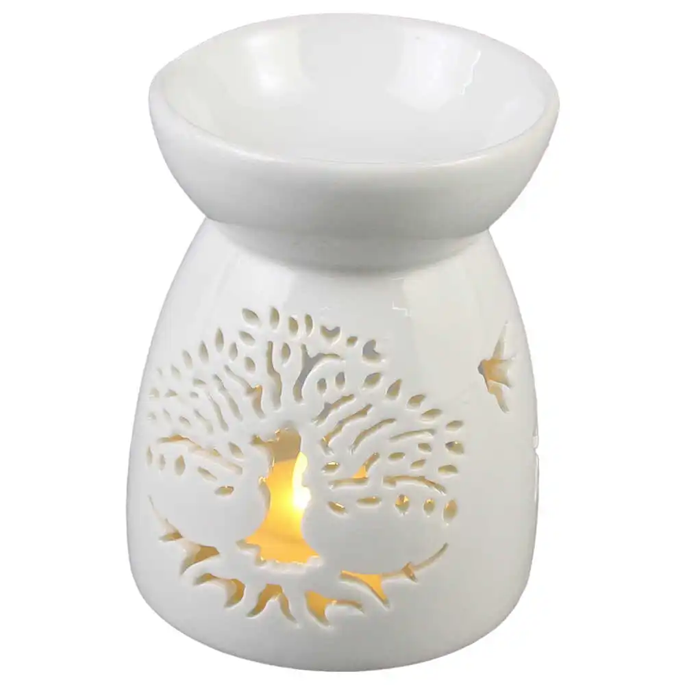 Candela aromaterapie din ceramica, 8.5×11 CM, Copac, alb