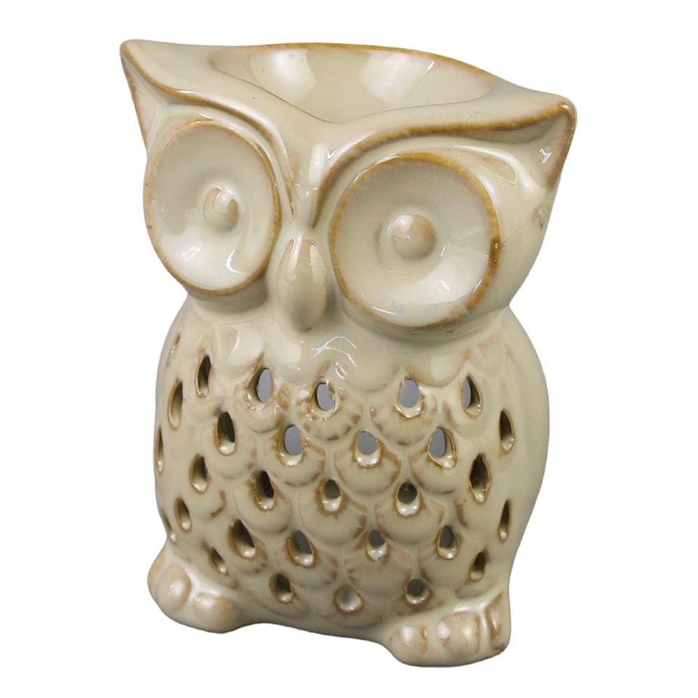 Candela aromaterapie din ceramica, 9.5×12 CM, Bufnita, crem