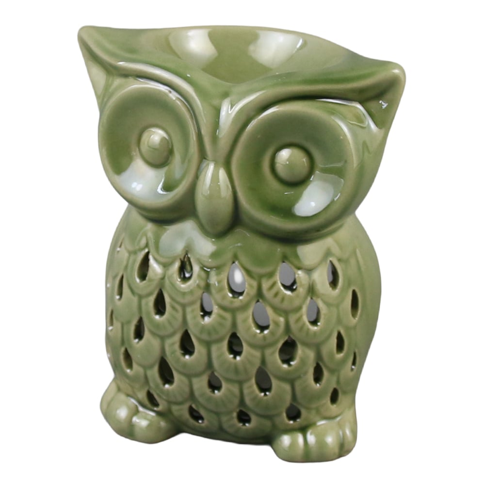 Candela aromaterapie din ceramica, 9.5×12 CM, Bufnita, verde