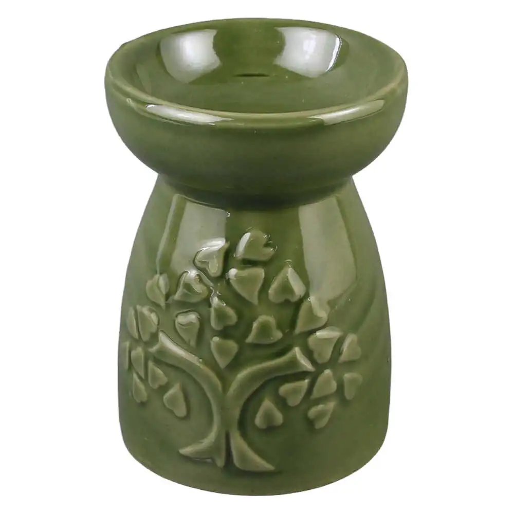 Candela aromaterapie din ceramica, 9×12.5 CM, Copac cu frunze, verde