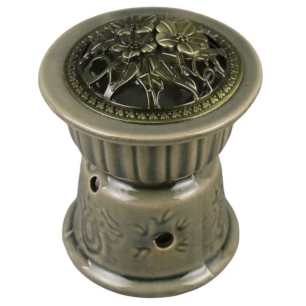 Candela aromaterapie din ceramica, cu capac metalic 10 CM, verde