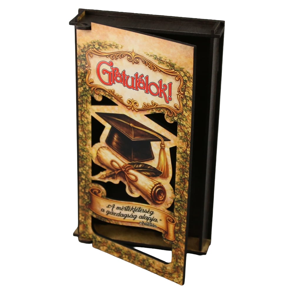 Caseta cadou absolvire din lemn pentru bani „Gratulalok!” 17.5 x 10 cm