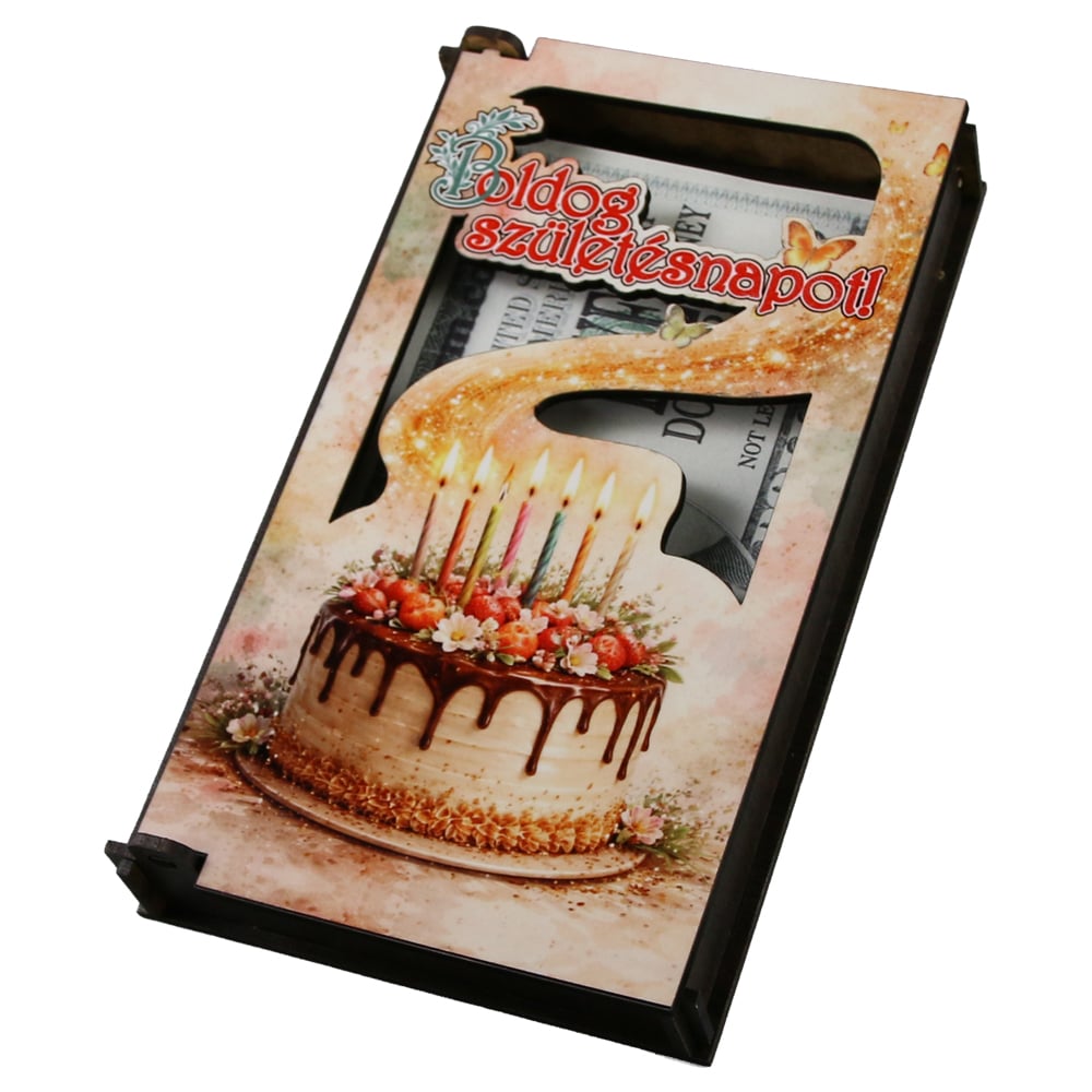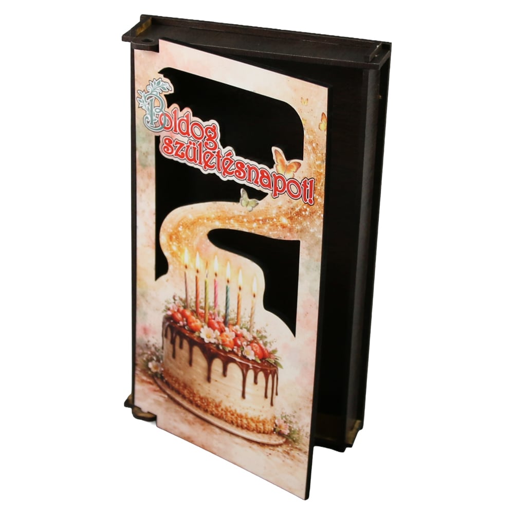 Caseta cadou din lemn pentru bani „Boldog Szuletesnapot” 17.5 x 10 cm