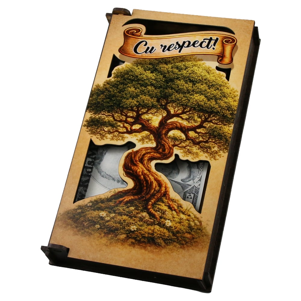 Caseta cadou din lemn pentru bani „Cu Respect!” 17.5 x 10 cm