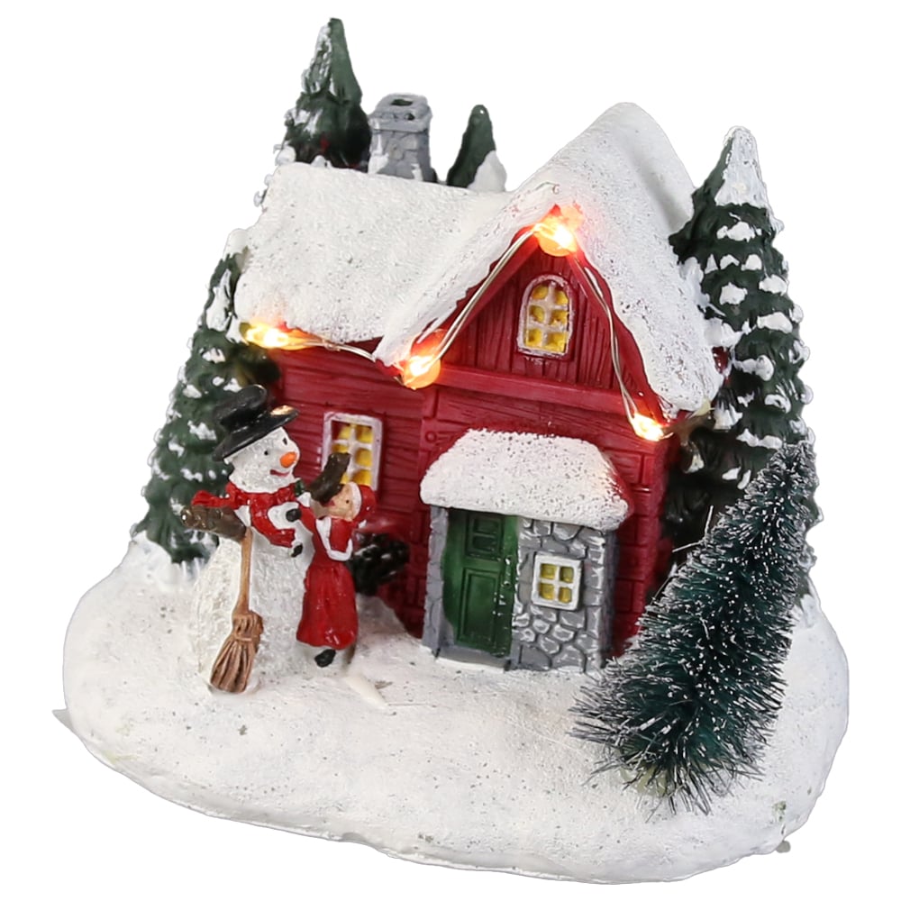 Casuta de Craciun cu led, din rasina, 11×9 CM, om de zapada