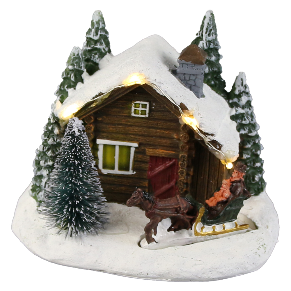 Casuta de Craciun cu led, din rasina, 11×9 CM, sanie