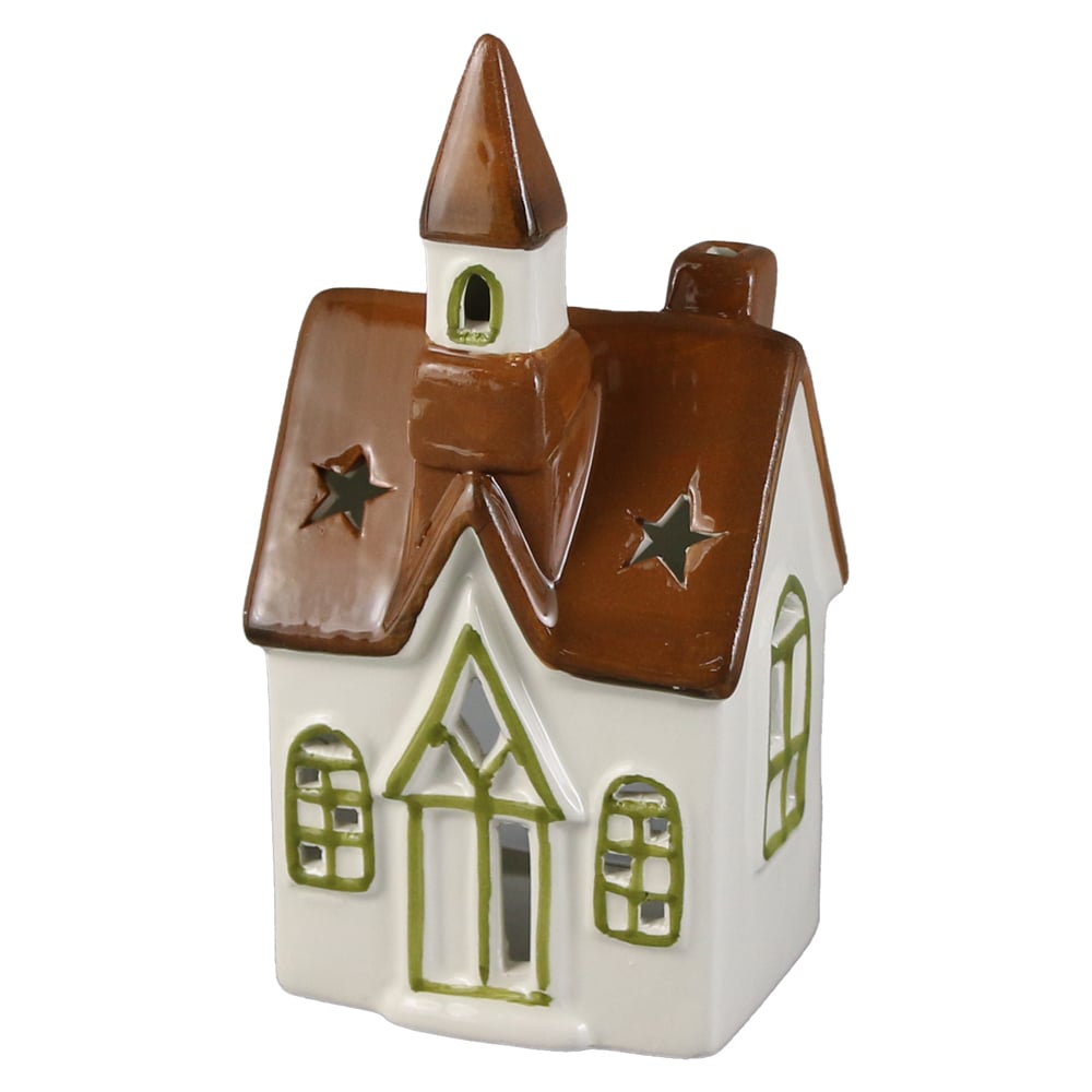 Casuta decorativa Craciun, din ceramica, candela, 14 CM, verde