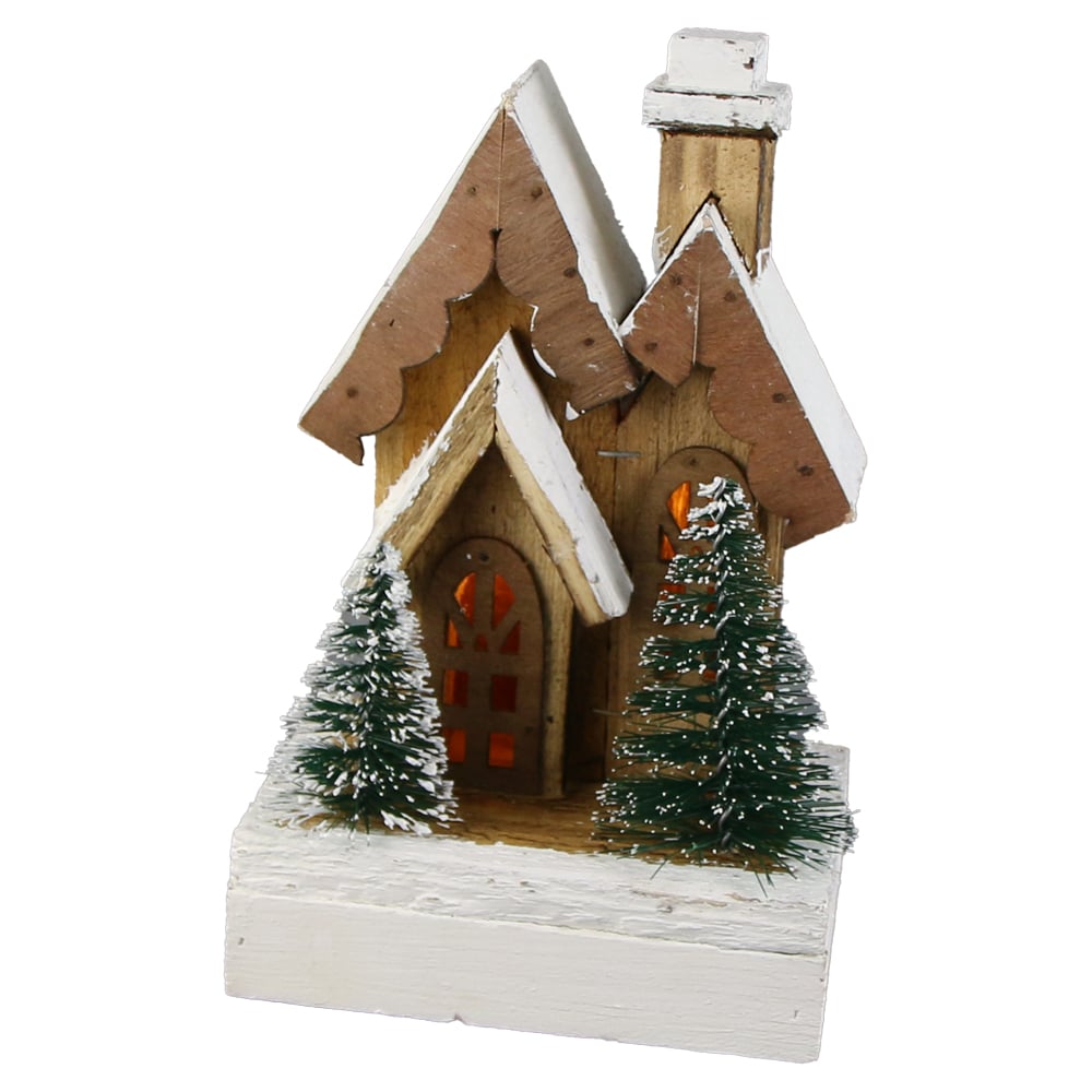 Casuta decorativa Craciun, din lemn, cu led, 22 CM