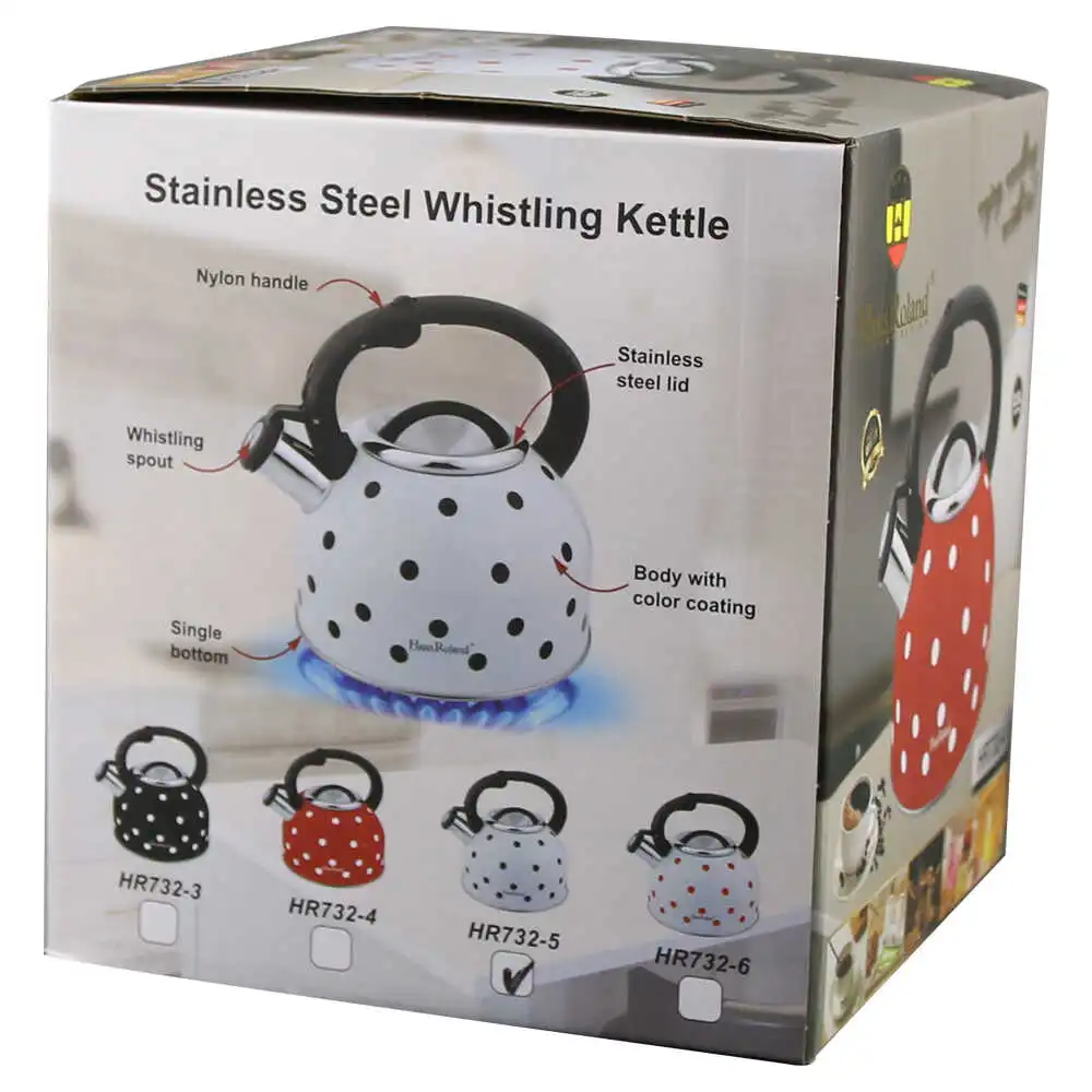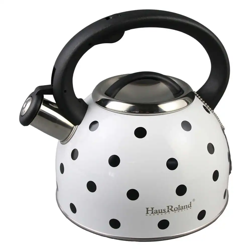 Ceainic din otel inoxidabil 2.5 L, Alb cu buline negre, Haus Roland