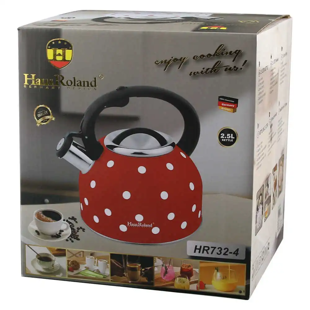 Ceainic din otel inoxidabil 2.5 L, Rosu cu buline albe, Haus Roland