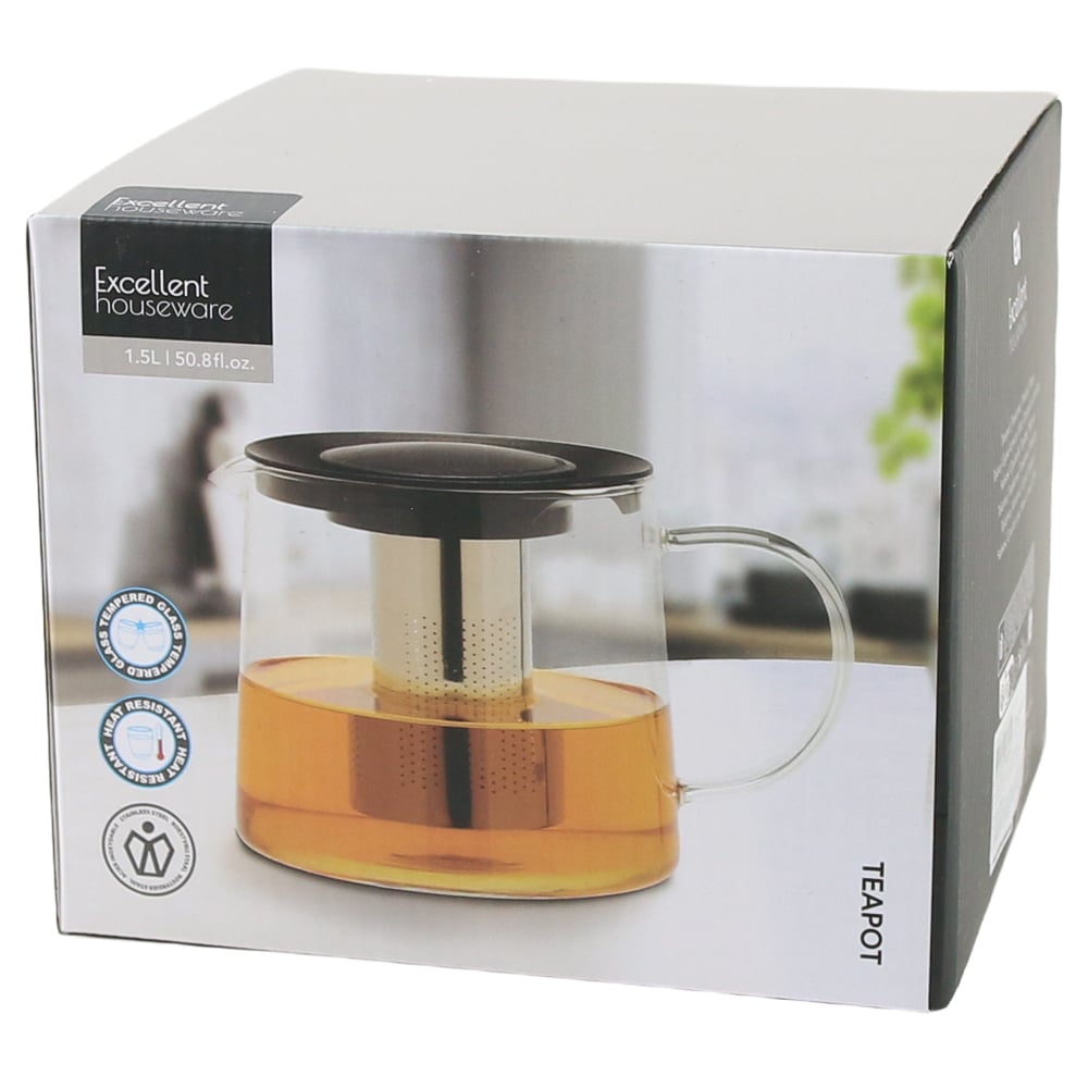 Ceainic din sticla cu infuzor si capac 1.5 L, Excellent Houseware