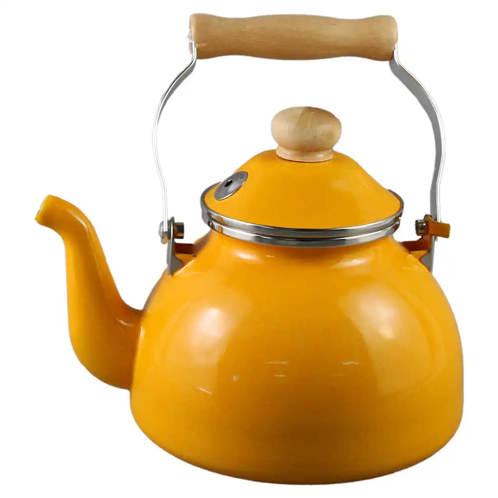 Ceainic emailat cu capac 2.5 L, cu maner lemn