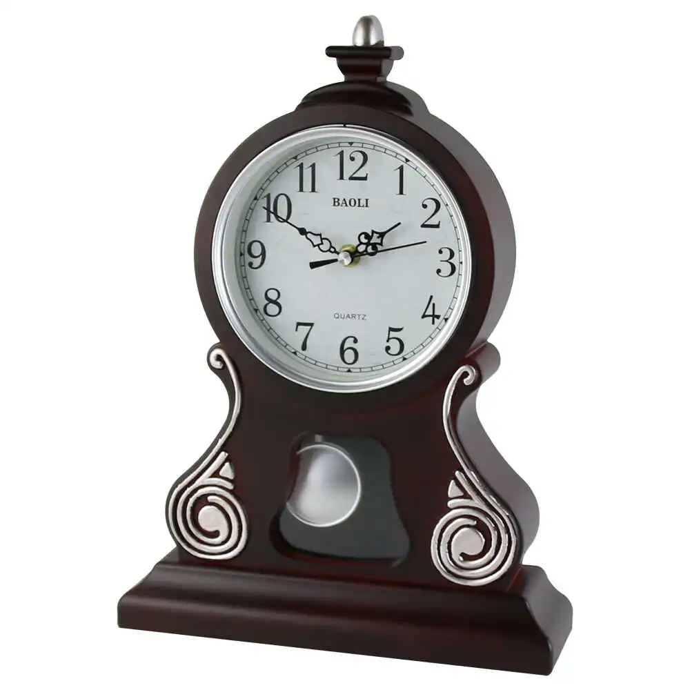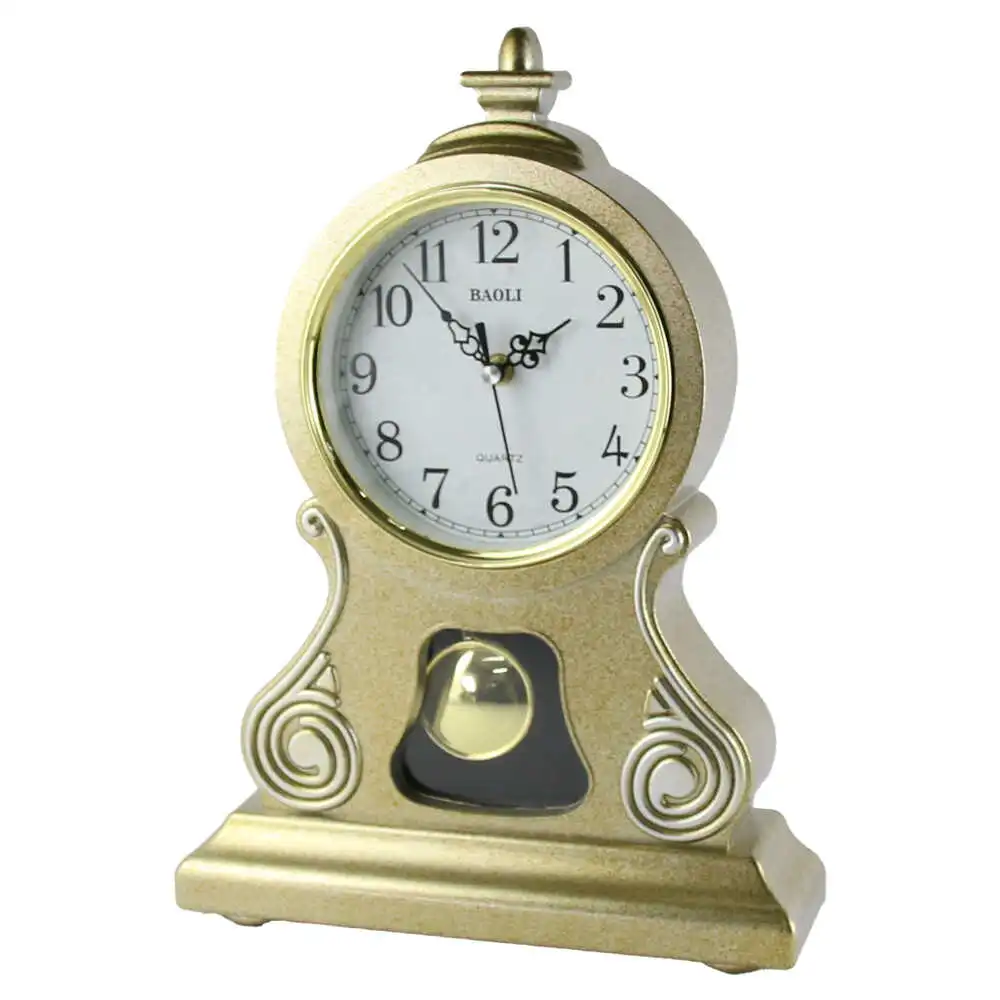 Ceas de masa cu pendul, din plastic 28×39 CM, Maro/Auriu