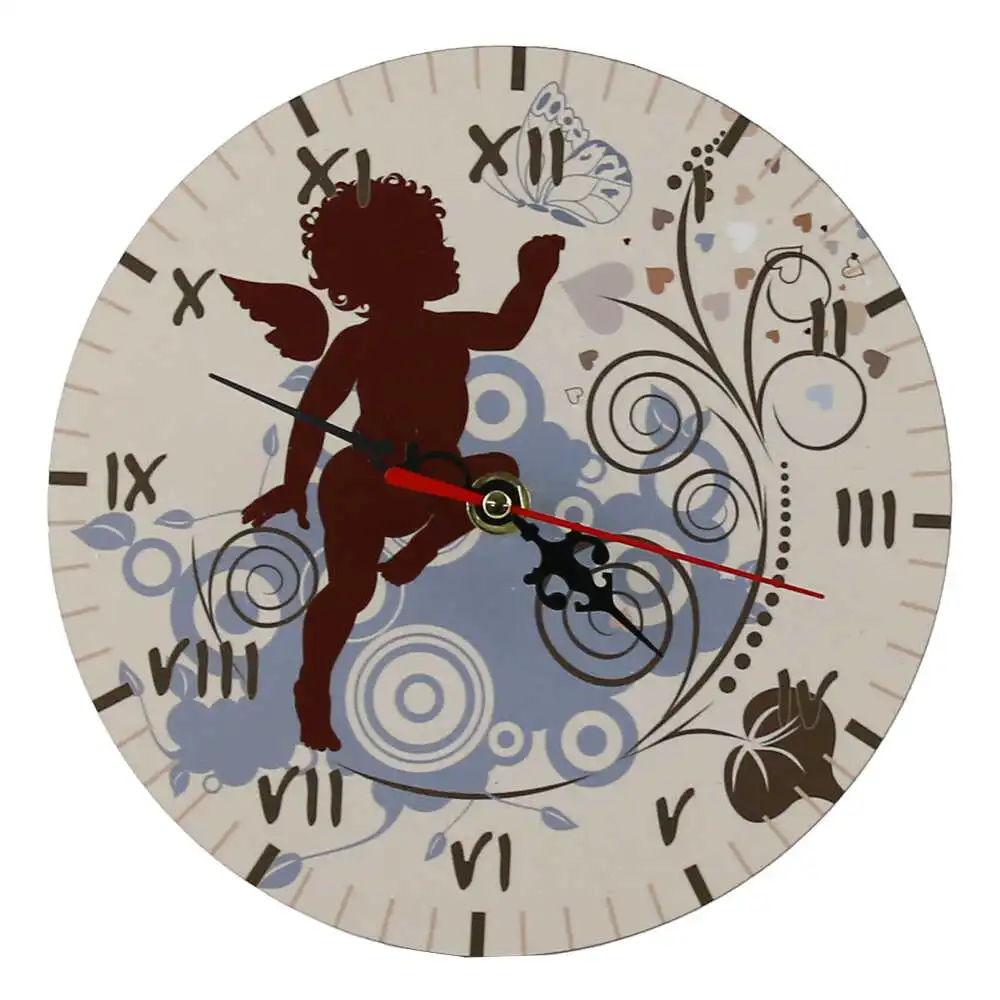 Ceas perete din lemn 20 CM, Ingeras cu fluture