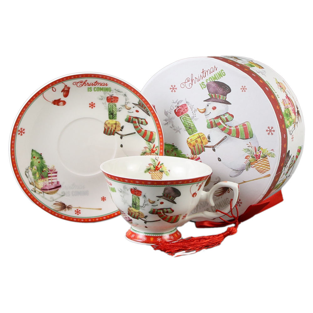Ceasca cu farfurie de craciun din ceramica 150 ml, in cutie cadou, Om de zapada