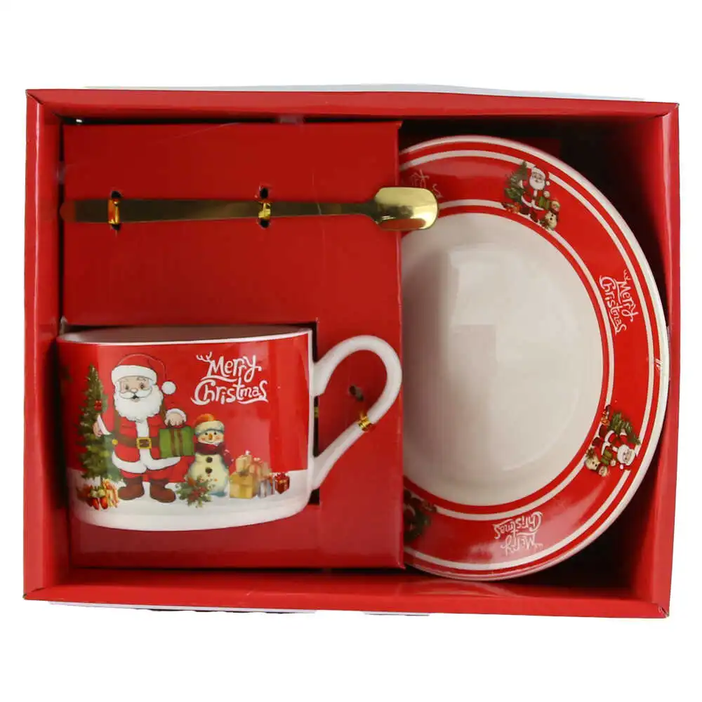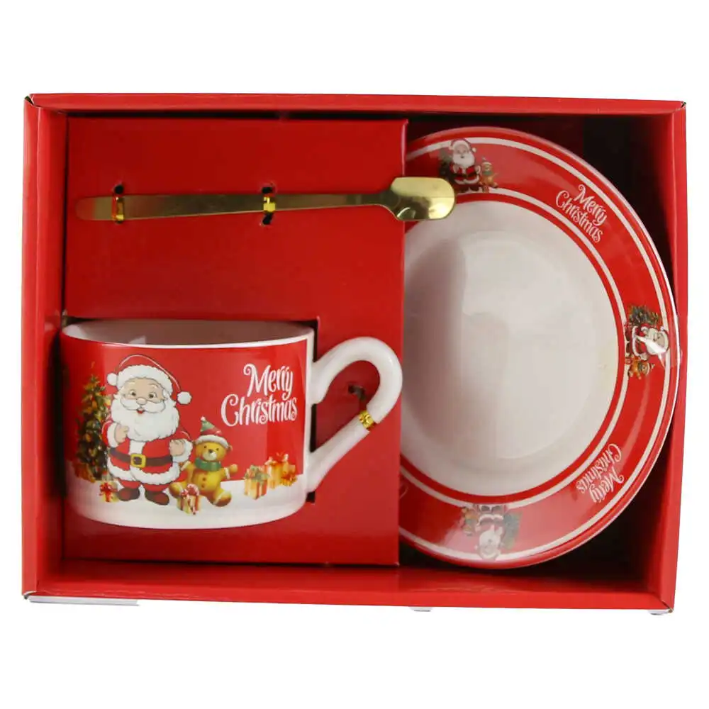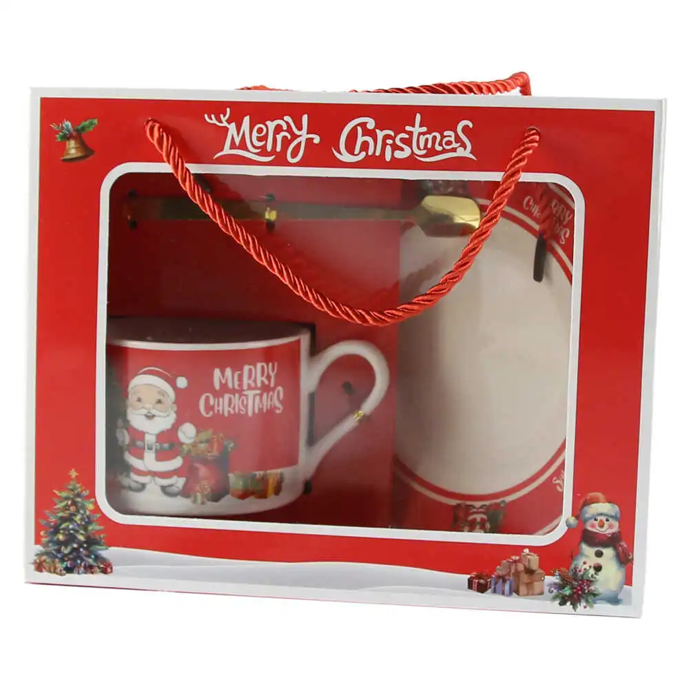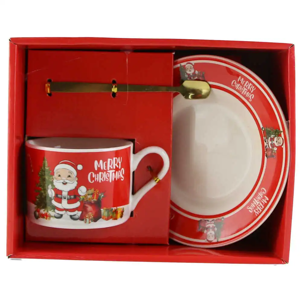 Ceasca si farfurioara Craciun cu lingurita metalica „Merry Christmas”, rosu