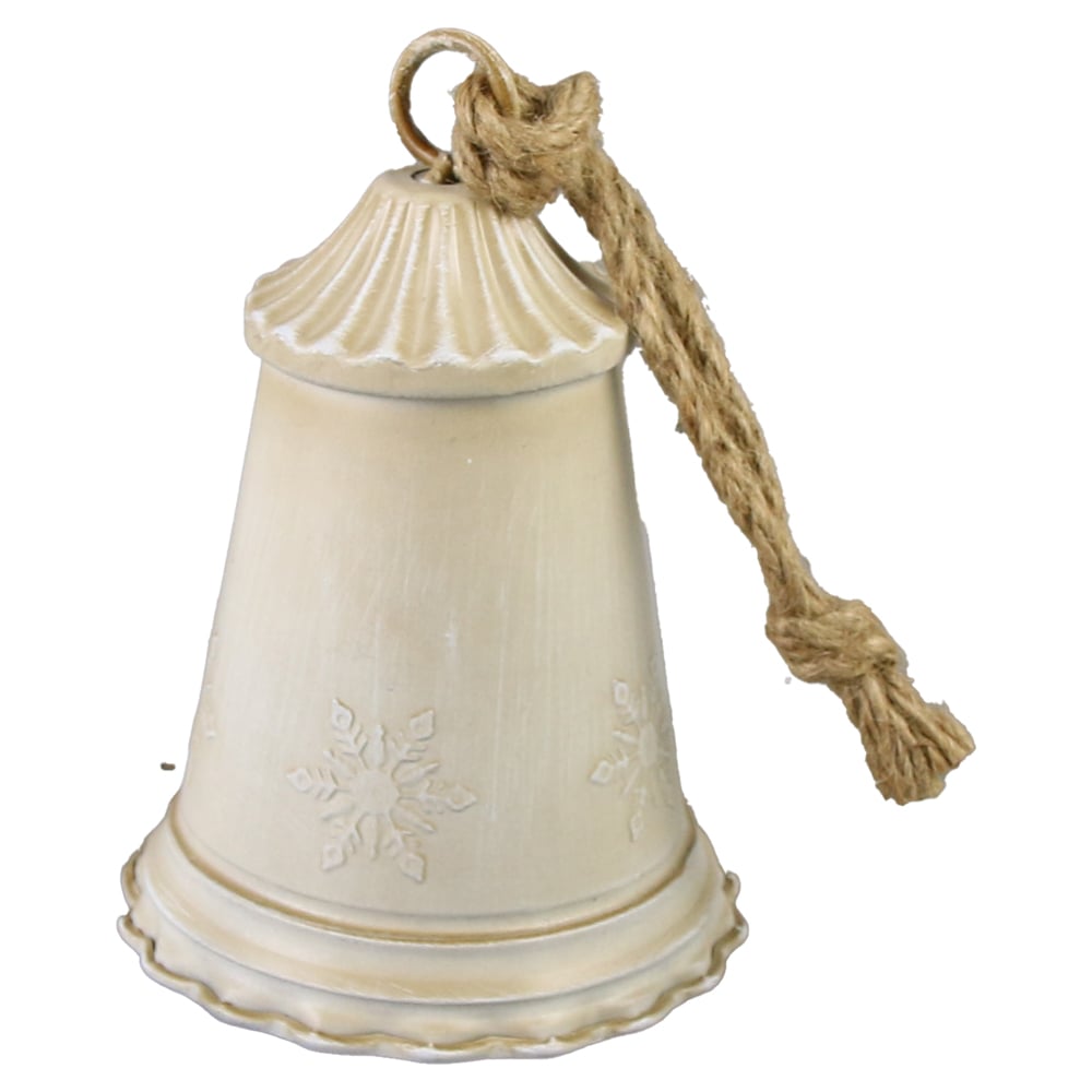 Clopotel metalic cu fulgi de nea, 11×17 CM, Crem