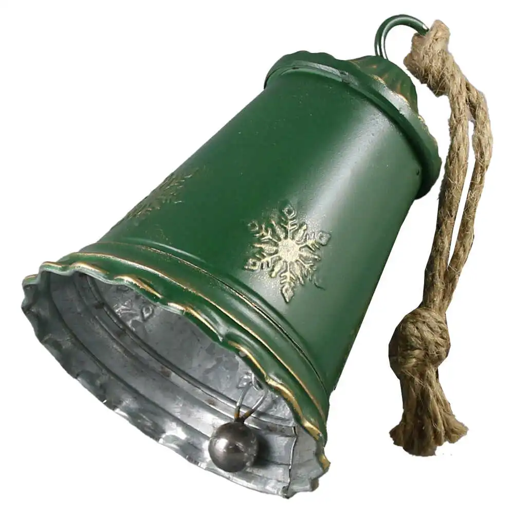 Clopotel metalic cu fulgi de nea, 11×17 CM, Verde
