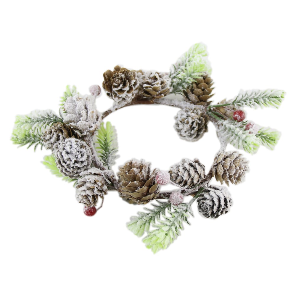 Coronita de Craciun cu bobite si conuri de brad inzapezite 18 CM