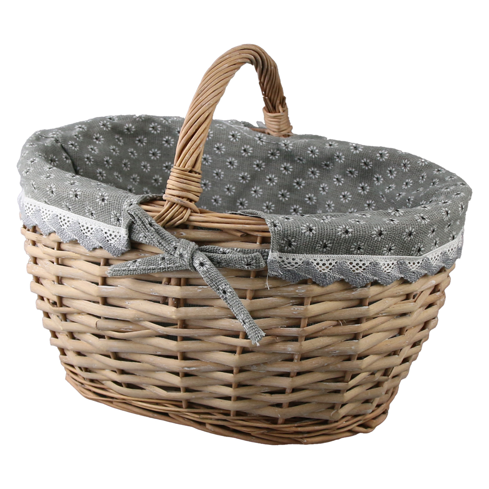 Cos de cumparaturi din rachita, cu husa florala 28×21 CM, natur/gri