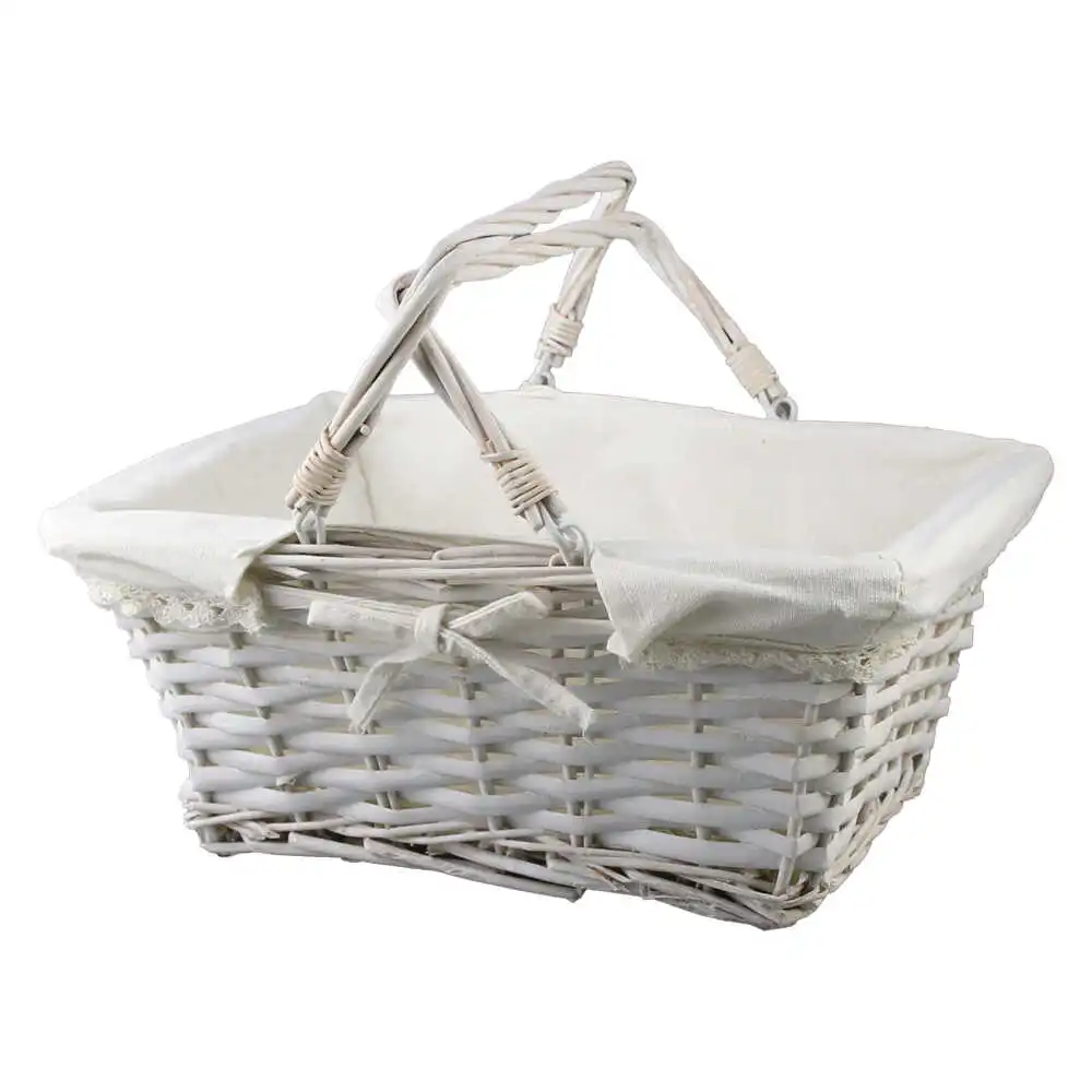 Cos de cumparaturi din rachita, cu manere si husa 36×27 cm, alb