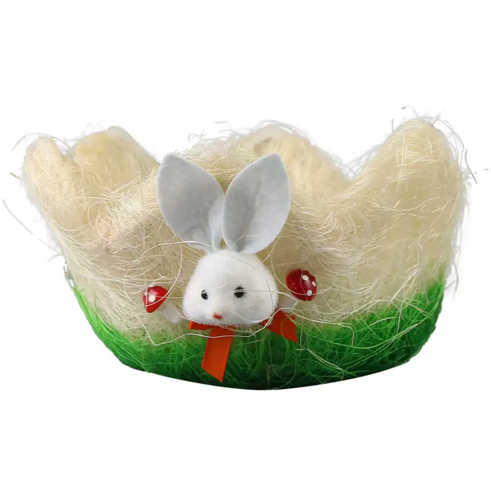 Cos decorativ din sisal, cu iepuras, ideal pentru decor, cadouri de Paste si pentru oua colorate.