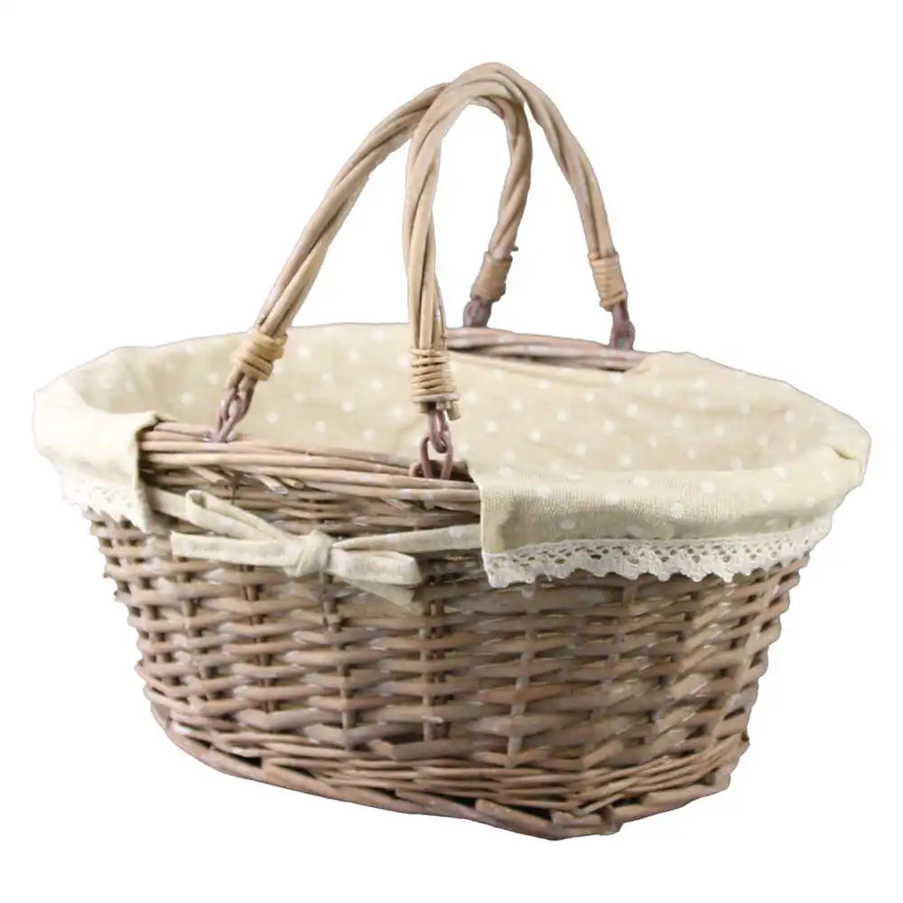 Cos oval de cumparaturi din rachita, cu manere si husa 35×26 cm