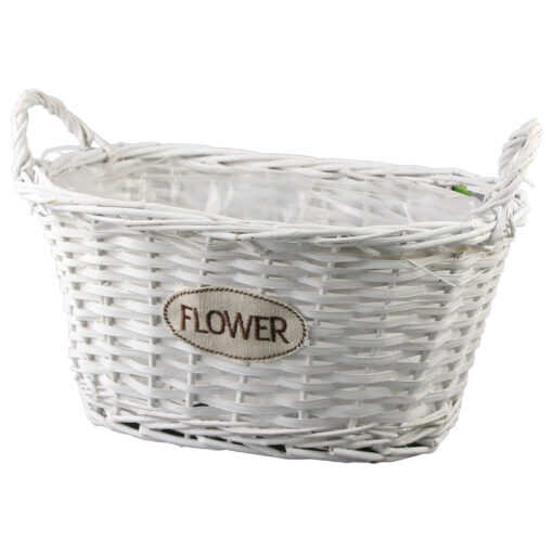 Cos oval din rachita cu manere pentru flori 33×20 cm, Flower