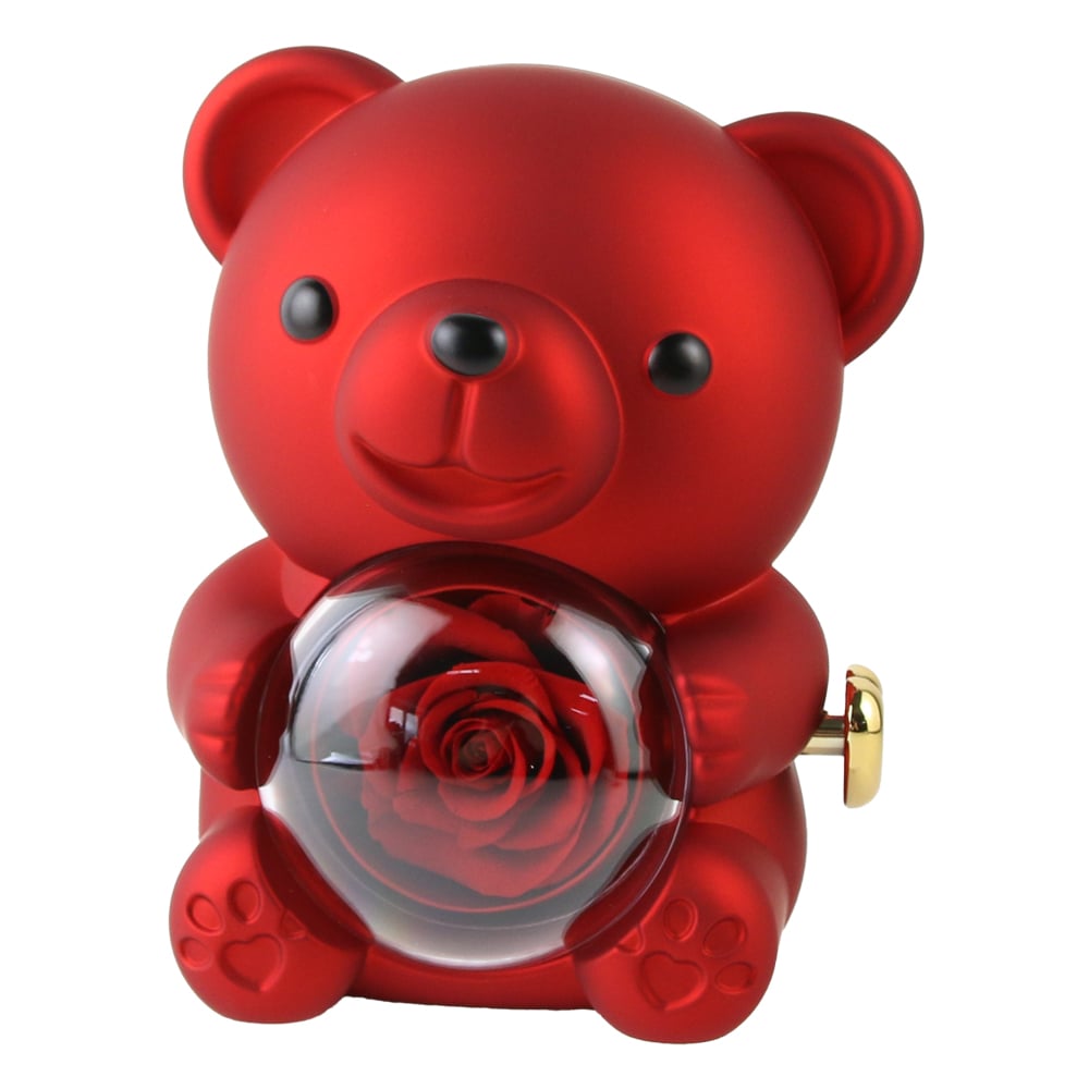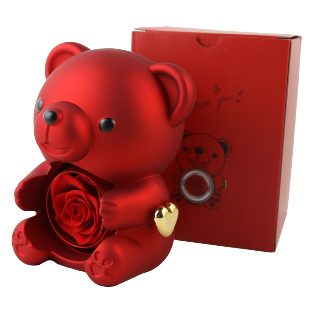 Cutie bijuterii Ursulet cu trandafir criogenat 13×16 cm, cu cutie de cadou