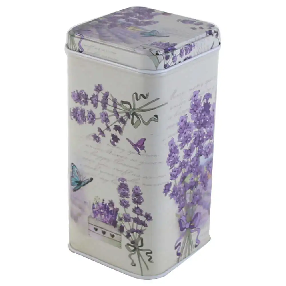 Cutie metalica 7x7x14 CM, Buchet Lavanda, cu fluture