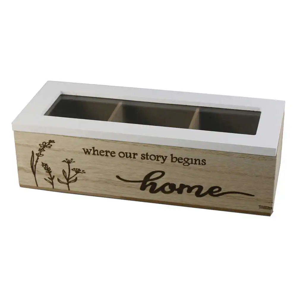 Cutie pentru plicuri de ceai 24x17x7 CM din lemn si sticla, 3 compartimente