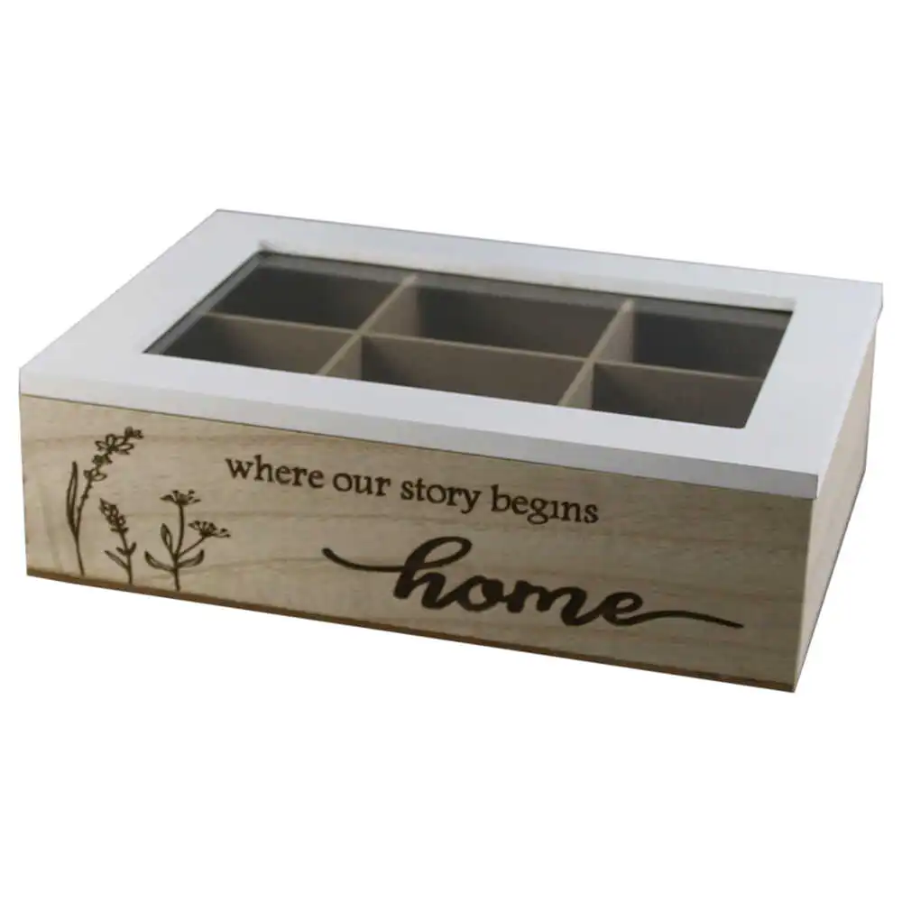 Cutie pentru plicuri de ceai 26x24x7 CM din lemn si sticla, 6 compartimente