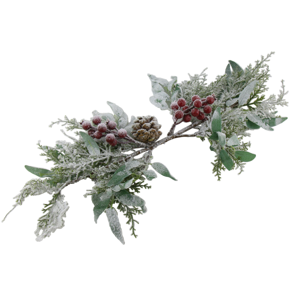 Decor Craciun Creanga cu verdeturi, conuri si bobite rosii 60 CM