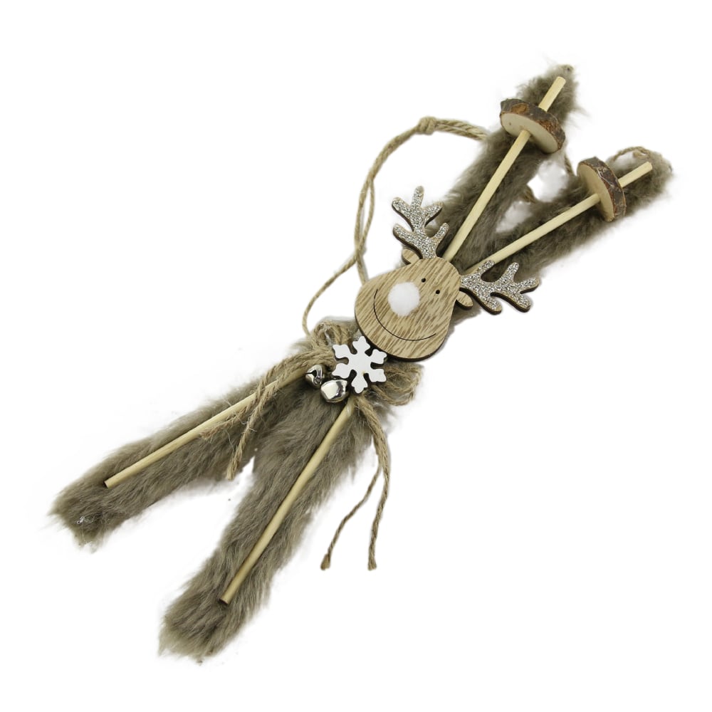 Decor Craciun Schi cu ren din lemn 29 CM, Maro