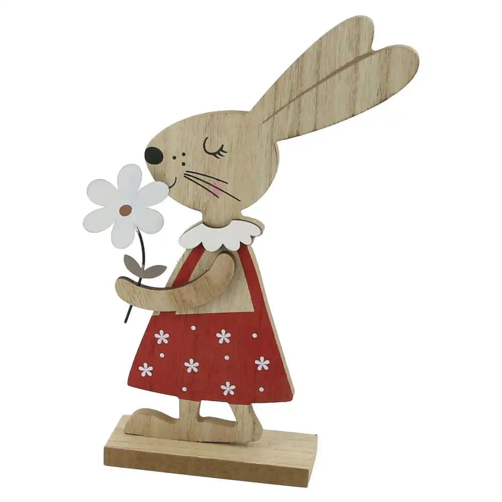 Decor din lemn Iepuras cu floare 19×27 CM, Fata