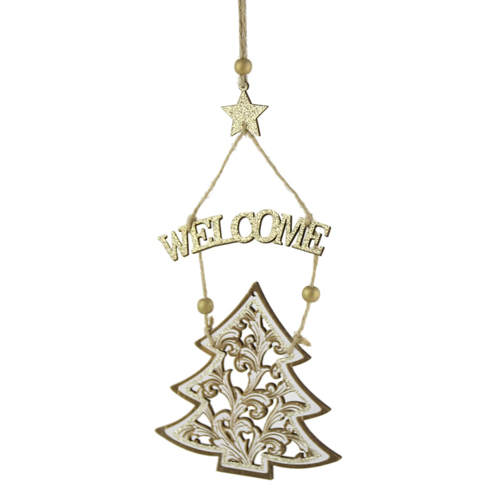 Decor pentru usa din lemn”Welcome” cu bradut, 12×35 CM