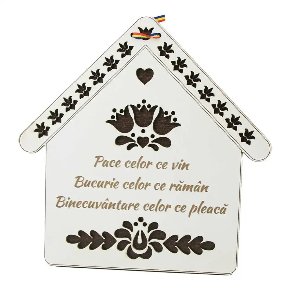 Decor usa din lemn Casuta „Pace celor ce vin…”, 19.5 CM