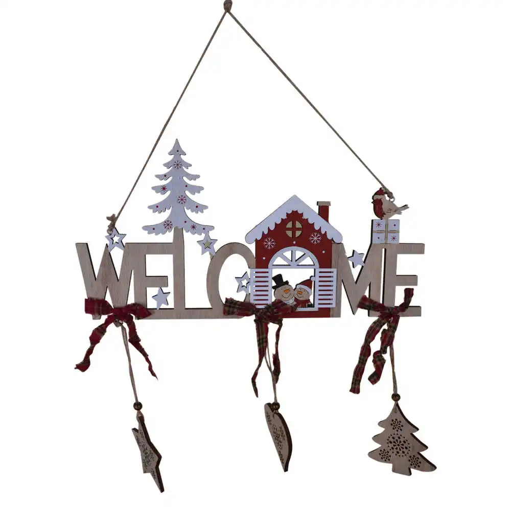 Decor usa/fereastra realizat din lemn pentru Caciun – Design „Welcome” (Model 2)