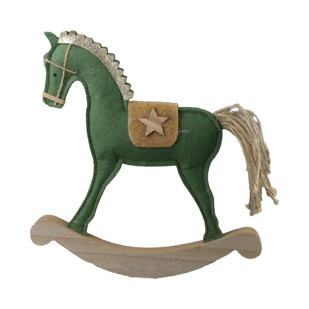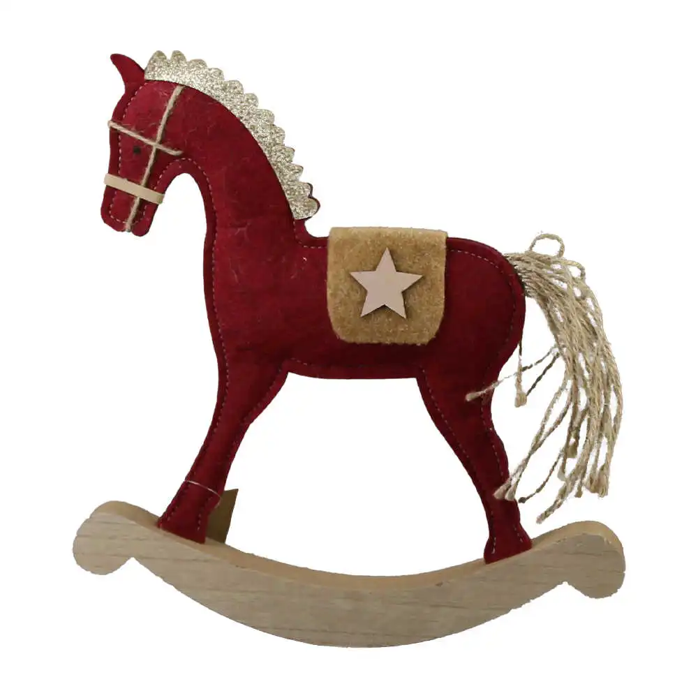 Decoratiune Craciun Cal balansoar din lemn si pasla 30 CM