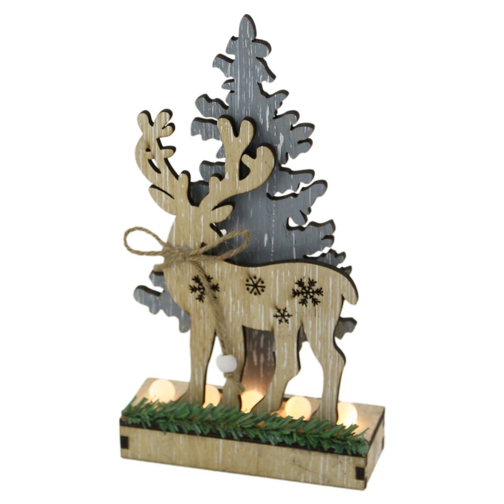 Decoratiune Craciun din lemn cu leduri, Ren 25 CM
