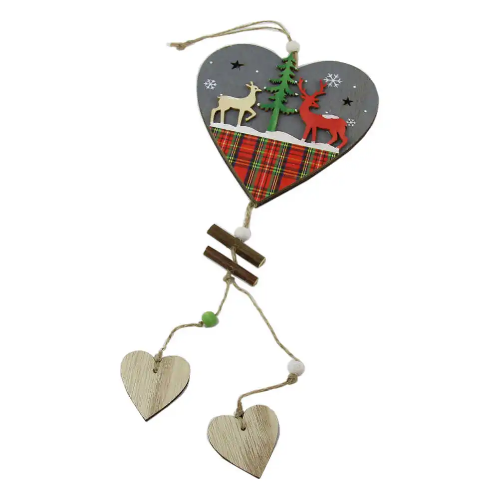 Decoratiune Craciun din lemn Inimioara cu ren 13×44 CM, gri