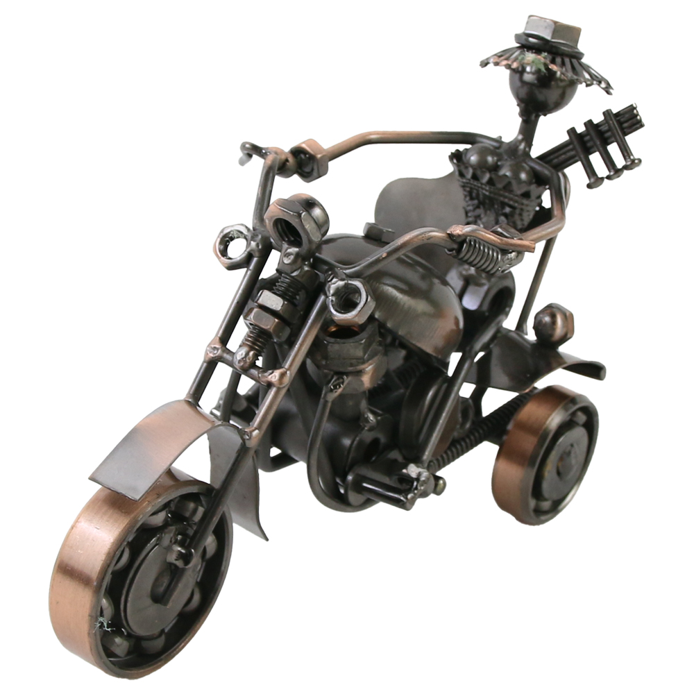 Decoratiune metalica Motocicleta cu figurina, 17 cm