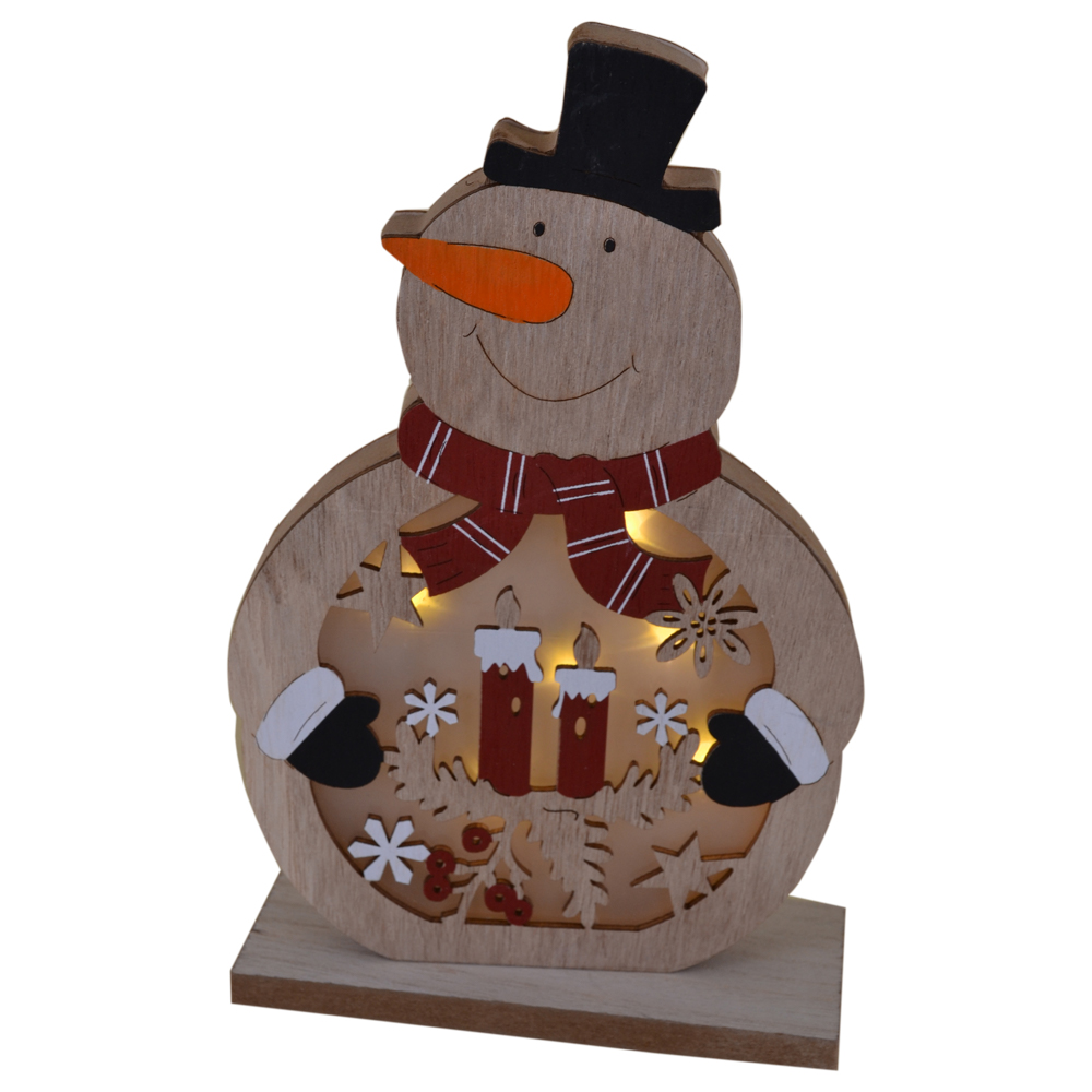 Decoratiune pentru masa cu led realizata din lemn in forma de om de zapada – Design cu lumanare si fulgi de nea (Model 1)