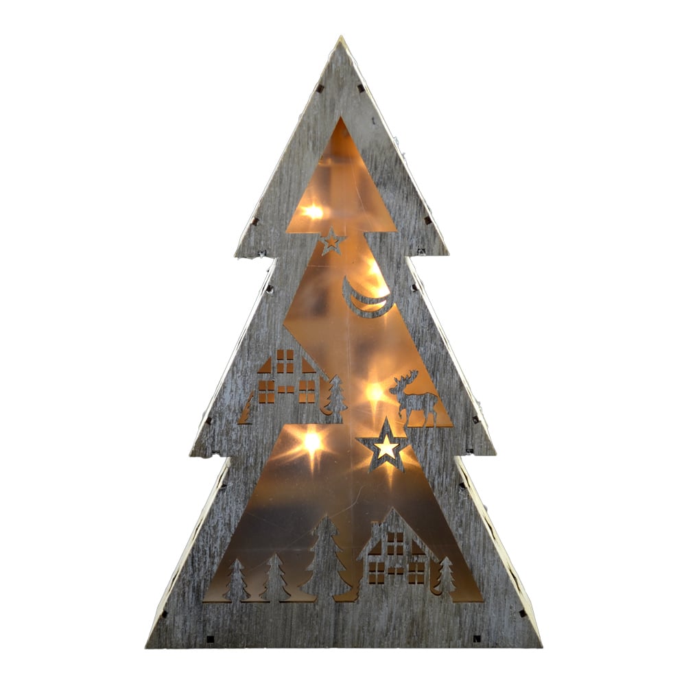 Decoratiune realizata din lemn in forma de brad cu lumini led – Design Craciun