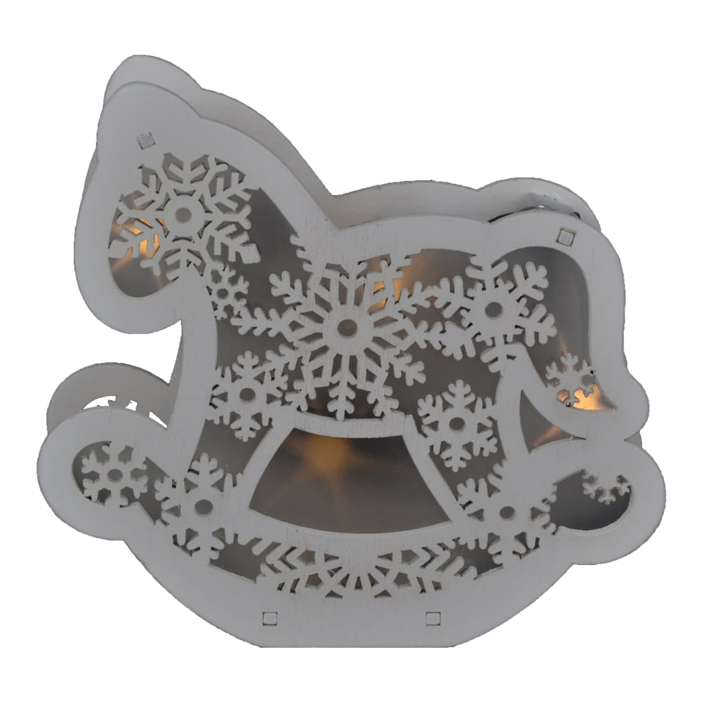 Decoratiune sezonirea cu LED realizata din lemn si material plastic – Design Calut tip balansoar / Fulg de nea – 2 modele