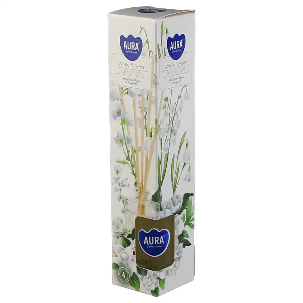 Difuzor parfum Flori albe, cu betisoare, 45 ml, Aura